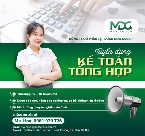 MDC GROUP TUYỂN DỤNG KẾ TOÁN TỔNG HỢP XÂY LẮP Thu nhập hấp dẫn lên đến 18 triệu đồng/tháng 1. Thông tin tuyển dụng Vị trí: Kế toán tổng hợp xây lắp Địa điểm làm việc: Phường Cầu Giấy, Thành phố Hà Nội Hình thức làm việc: Toàn thời gian Mức lương: 12 – 18 […]